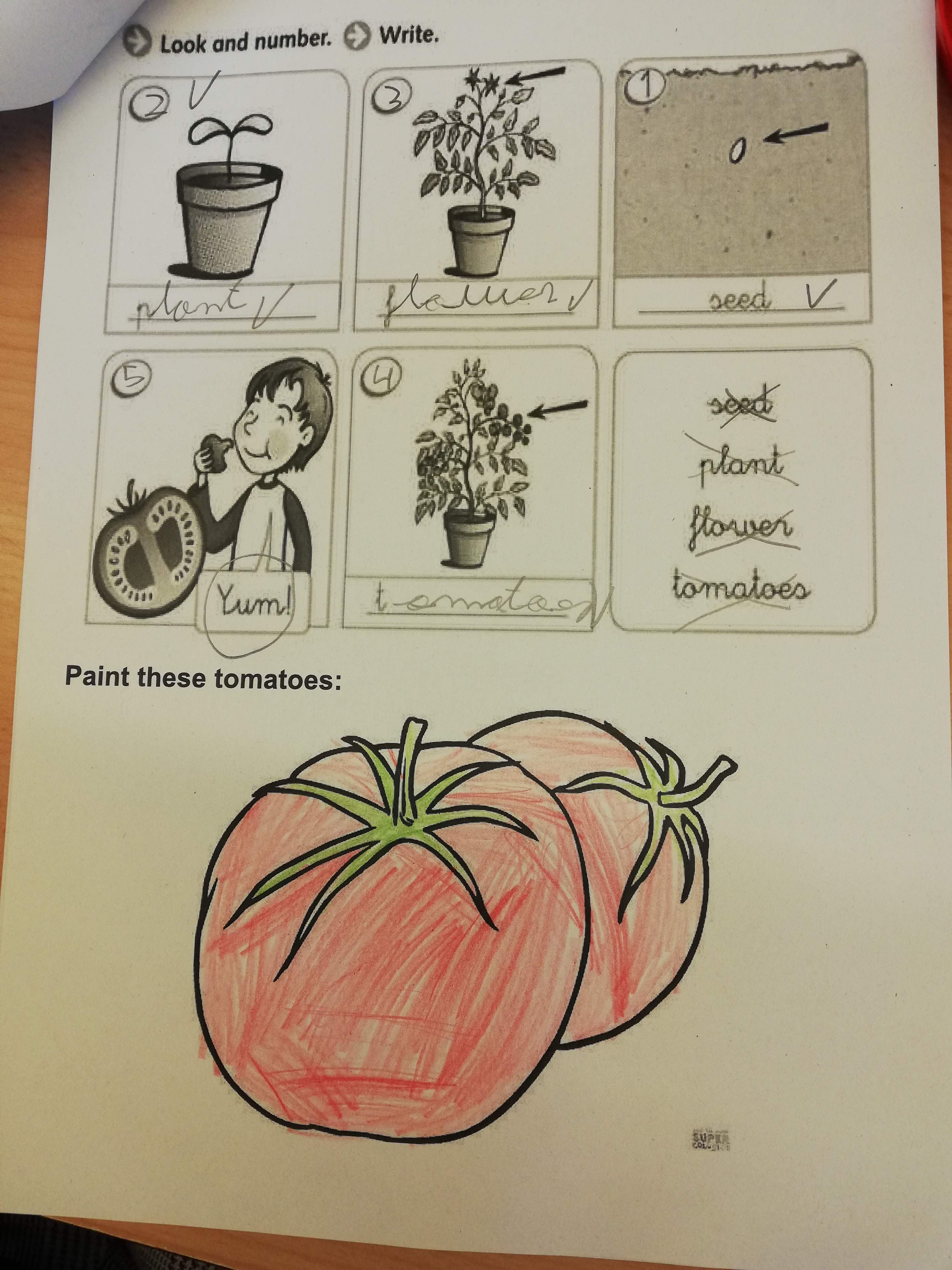 Amb les tutores han plantat llavors i just quan han germinat les llavors plantades, hem explicat també els passos del creixement d’una planta a ENGLISH.