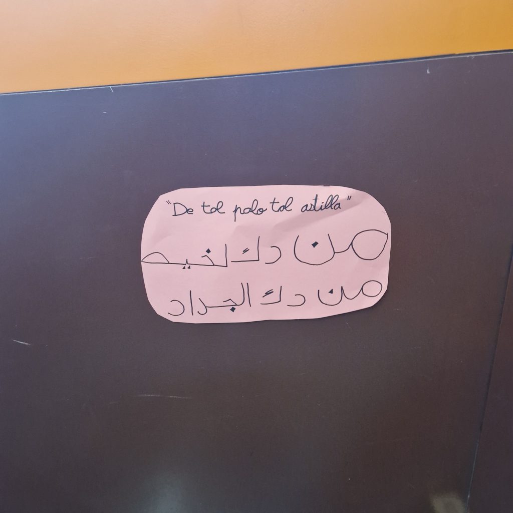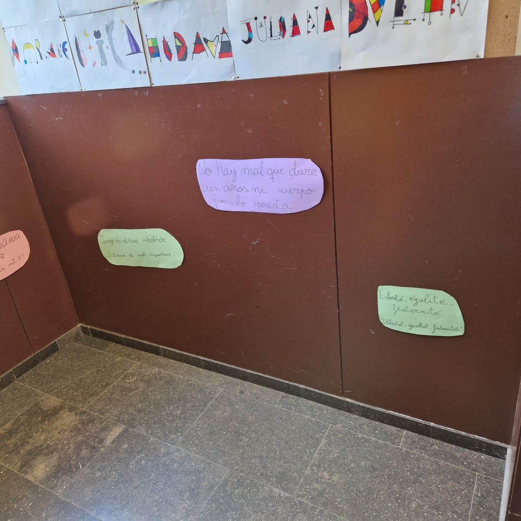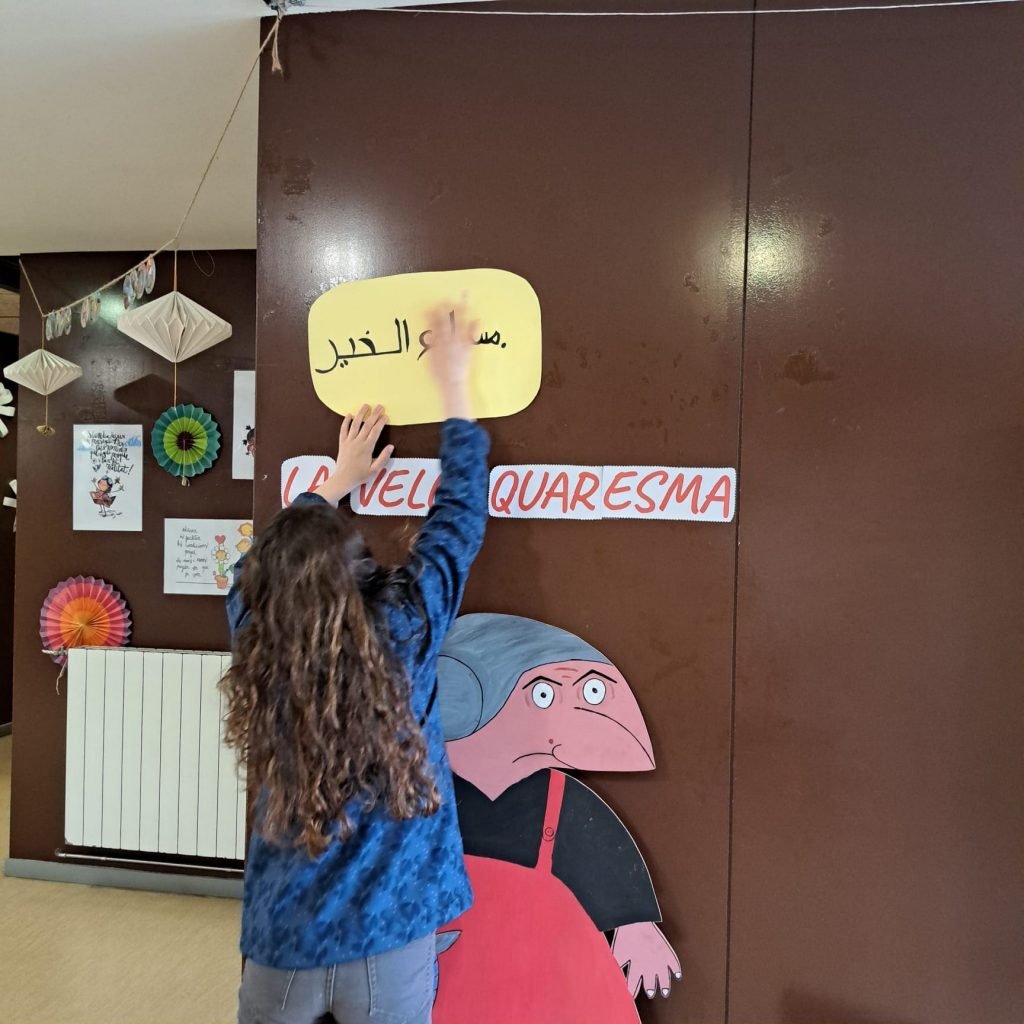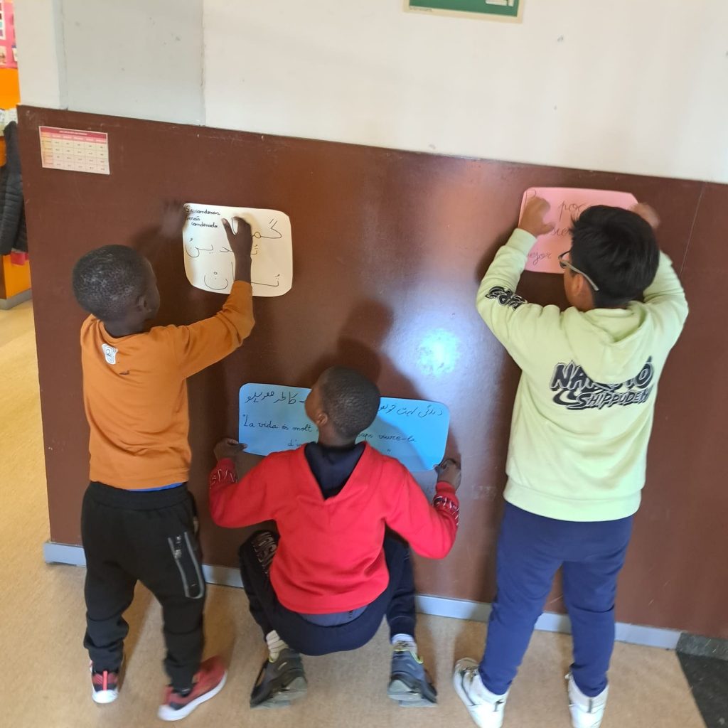 Primer vam demanar a totes les famílies de l’escola que ens fessin arribar una frase, dita, refrany en la seva llengua materna. Un cop ho vam reunir totes les frases vam realitzar, amb els alumnes d’aula d’acollida, el traspàs de totes elles en diverses cartolines per poder-les enganxar en diferents espais de l’escola. D’aquesta manera, tots els alumnes de la nostra escola han pogut observar i llegir les frases que ens han fet arribar des de casa.