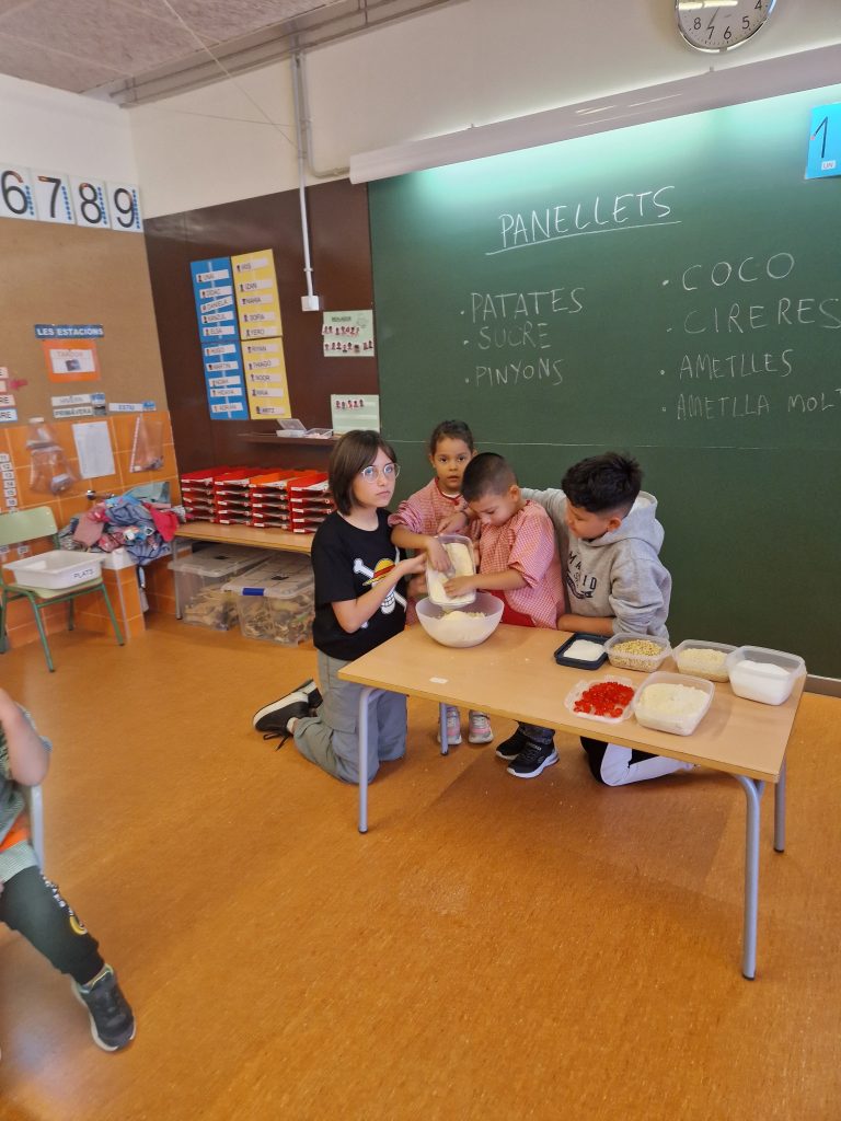 Com a tradició catalana, els alumnes d’Aula d’acollida vam treballar  la recepta dels panellets i vam anar a les aules d’infantil a ajudar a les tutores i als alumnes a l’elaboració dels seus panellets