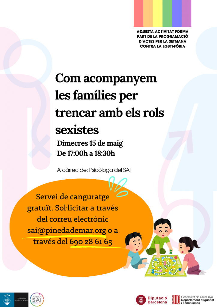 Recordar que la propera setmana es celebra la setmana de  contra la LGTBIfòbia i el poble de Pineda de Mar té previst fer algunes activitats sobre el tema: xerrada especialment  dirigida a les famílies.