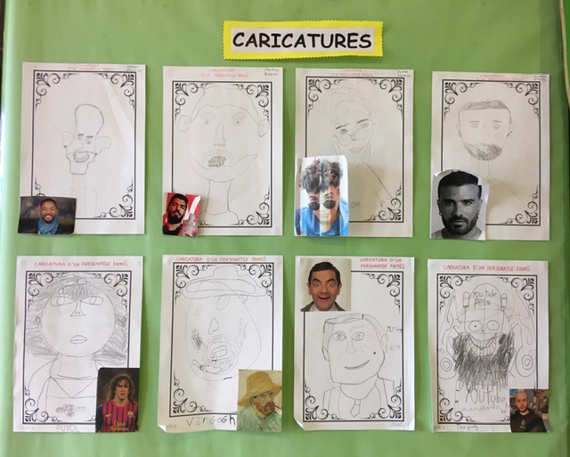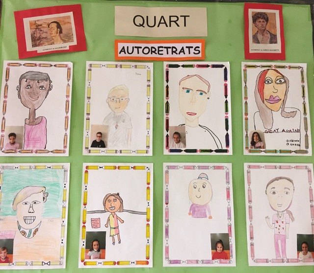 També treballem l’autoretrat i la caricatura. Primer elaborem el propi retrat basant-nos amb una foto de cada nen/a i després ens endinsem en el món de les caricatures.