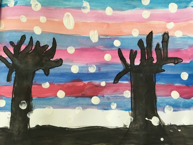 A L’HIVERN FEM ACTIVITATS RELACIONADES AMB AQUESTA ÈPOCA DE L’ANY. EN AQUEST CAS: UN PAISSATGE PINTAT AMB AQUAREL·LES I AMB ELS PROPIS DITS.