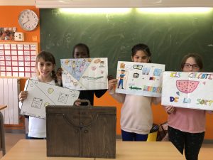 Els alumnes de 4t fem grups i creem contes amb el material del “Kamishibai”.