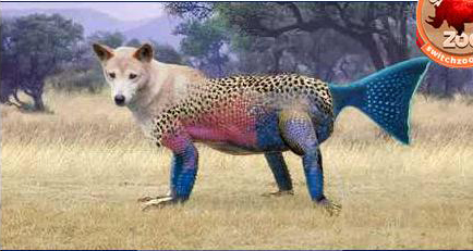Aquest animal menja carn d’animals i té una cua de peix i té un cap de gos i té mig cos de tigre.Salta i viu a la selva i també pot viure al zoo, té els ulls negres.