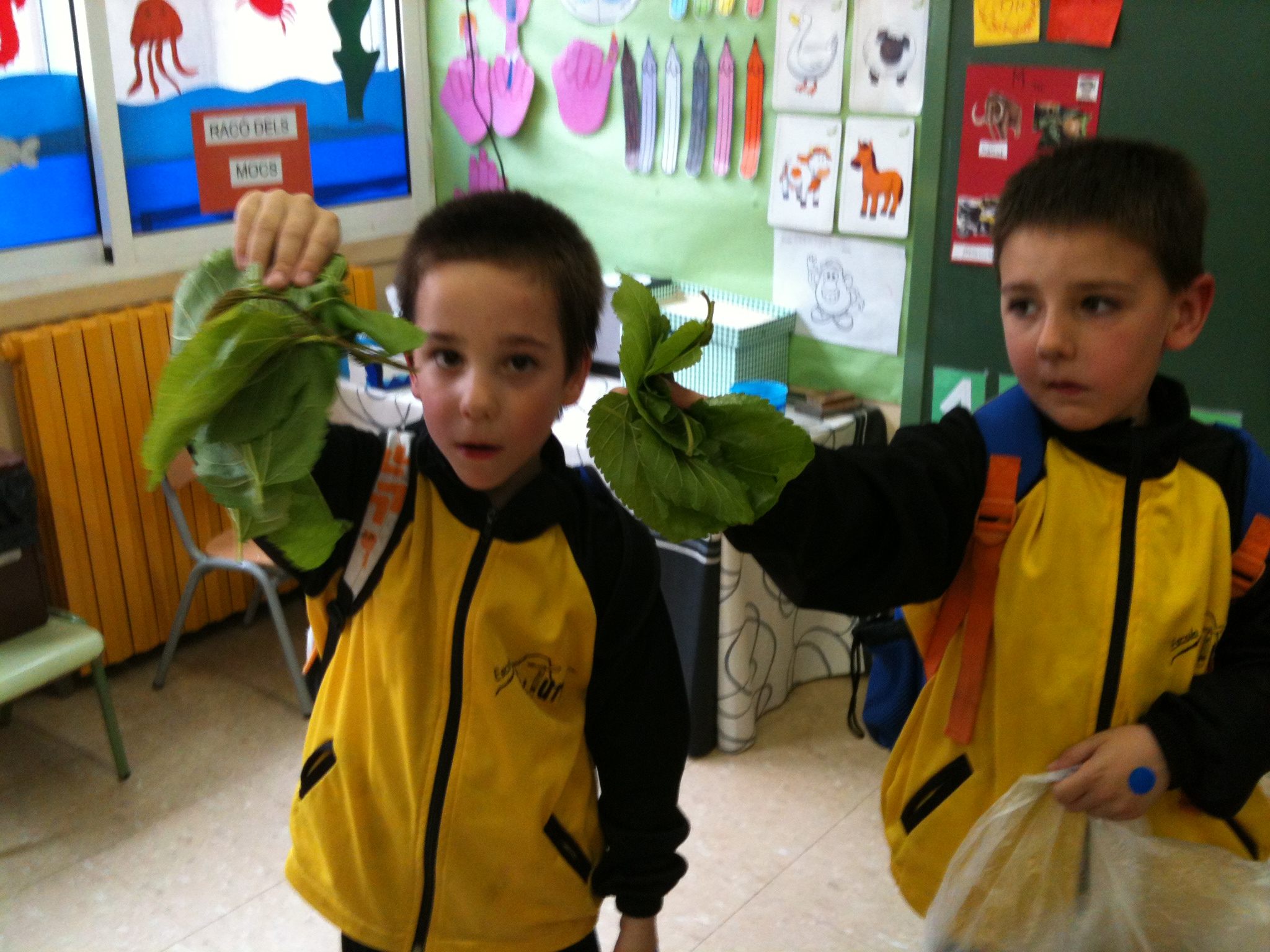 Ens hem preguntat que voliem saber dels cucs de seda. Els hem observat amb lupa i els hem donat de menjar. I per acabar hem fet cucs de seda amb plastilina.