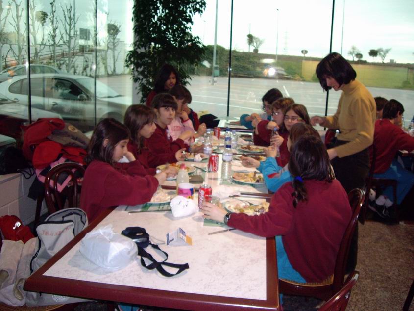 Al matí, vam esmorzar a l’Àrea de Guissona i vam fer la visita guiada a l’escorxador: dalt d’un tren ens vam passejar per l’edifici i vam veure com es preparen els diferents tipus de carn que trobem a les botigues. Després vam anar a dinar a l’Àrea de Guissona i vam menjar d’aquesta carn, que ens vam poder coure nosaltres mateixos.