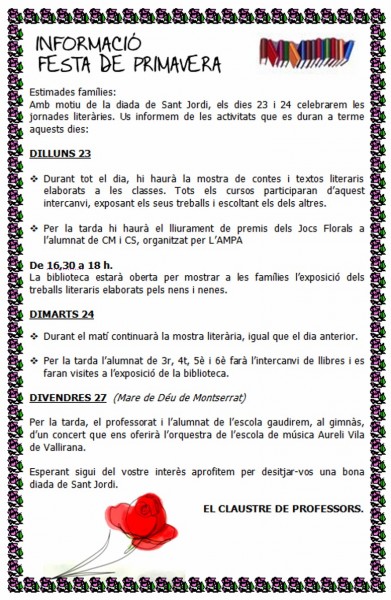 Per finalitzar la setmana de Sant Jordi, hem pogut gaudir d’un concert interpretat per l’orquestra de l’Escola de Música Aureli Vila, de Vallirana. Ens ha encantat, i esperem poder-ho repetir en moltes més ocasions.
