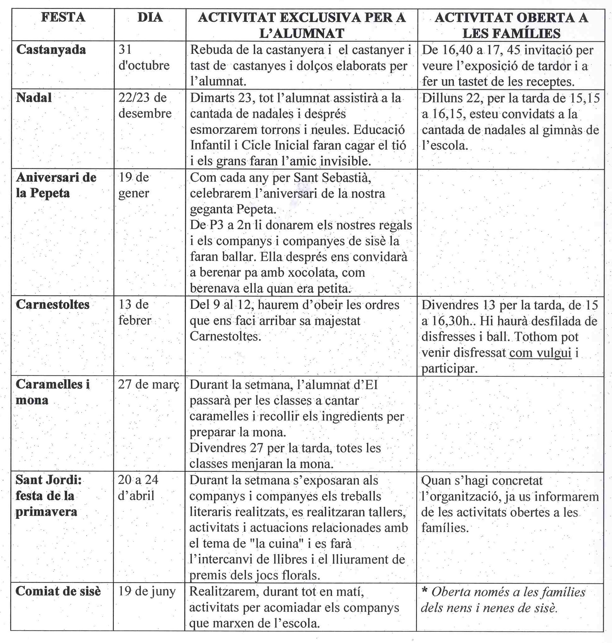 Us presentem les activitats obertes a les famílies del curs 2014-2015. Us hi esperem!