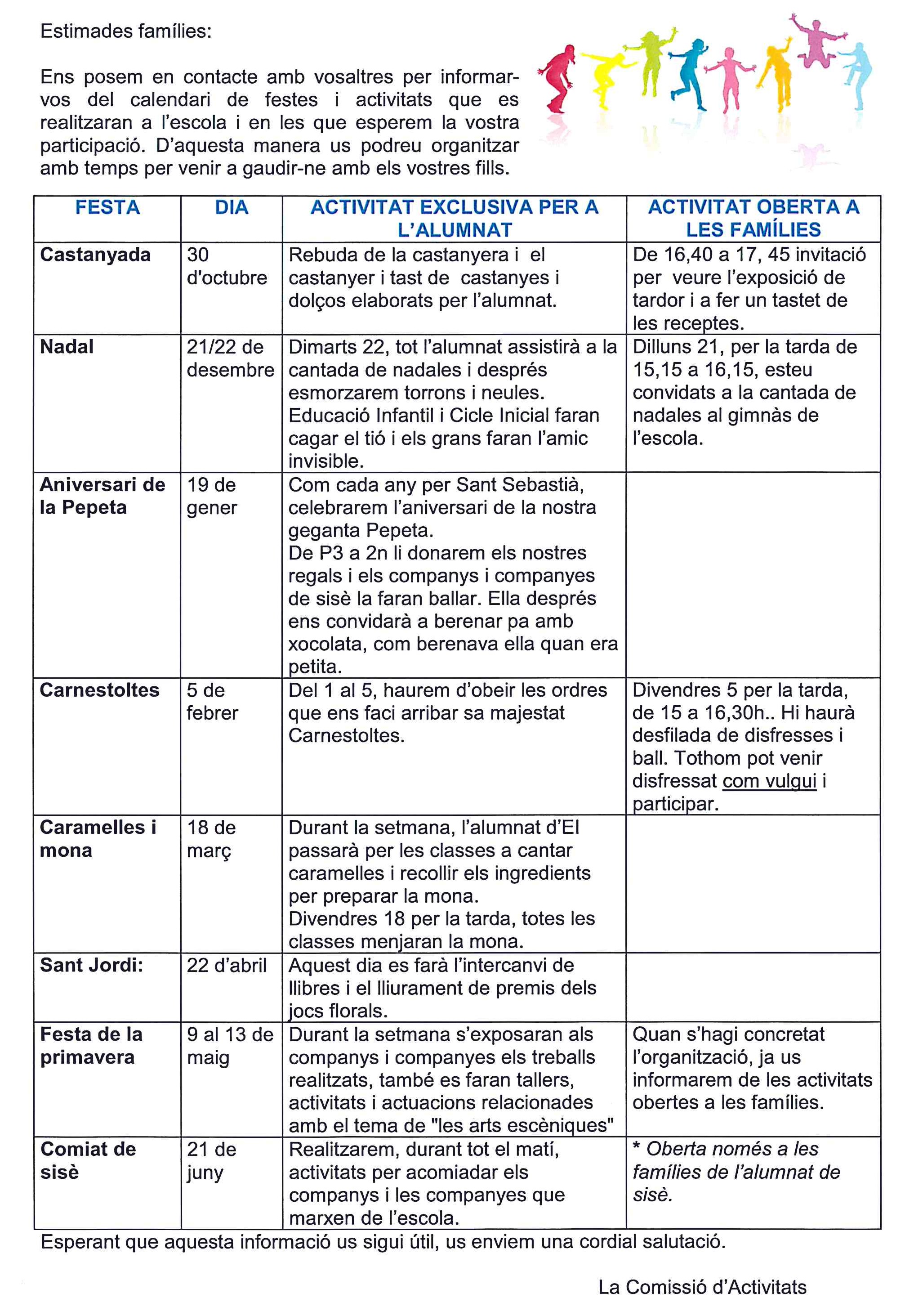 Us presentem les activitats obertes a les famílies del curs 2015-2016. Us hi esperem!