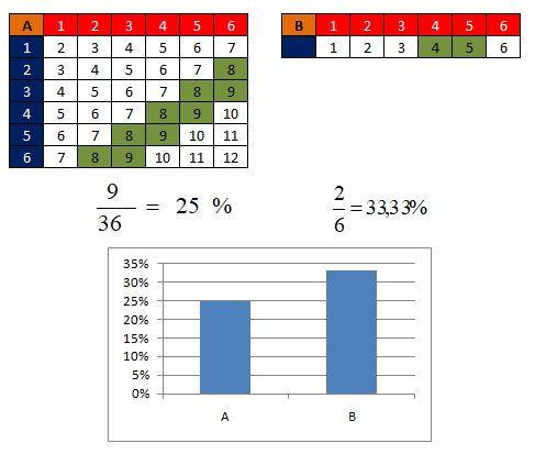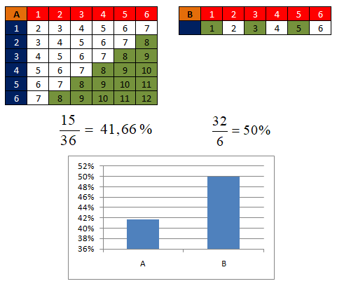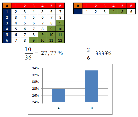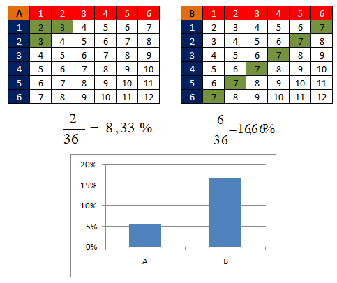 - A. Treure un nombre més gran que 7 sumant dos daus.