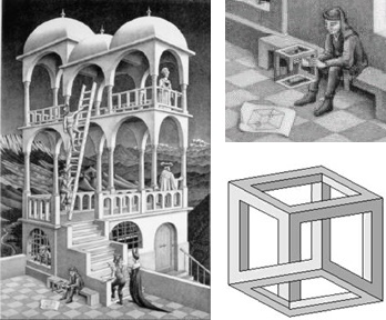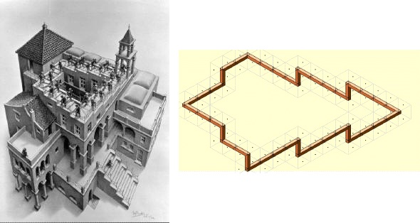 Hi ha la possibilitat de combinar trossos possibles amb impossibles. Així, per exemple, a la següent figura la part dreta és possible i l’esquerra impossible.