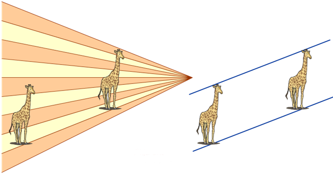 • les línies horitzontals en direcció de profunditat es veuen inclinades.