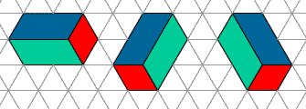 Pots practicar intentant encaixar aquests tres rombes dintre de l’hexàgon. Quan ho hagis fet podràs veure que els tres rombes formen un cub.