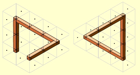 Per observar millor la trampa pots intentar reconstruir el Triangle de Penrose amb les cinc peces de sota. El Triangle que obtindràs és simètric al del model.
