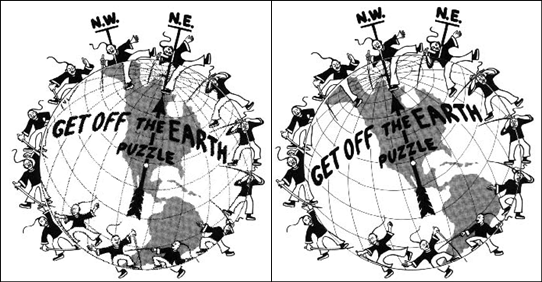 L’any 1896 el gran creador nord-americà de trencaclosques matemàtics Sam Loyd va publicar aquest joc predecessor de tots els del seu tipus. Hi ha una peça exterior i una interior que coincideix amb la Terra. Només que la girem una mica farem aparèixer o desaparèixer un guerrer. Passarem de 12 (posició NW) a 13 (Posició NE).