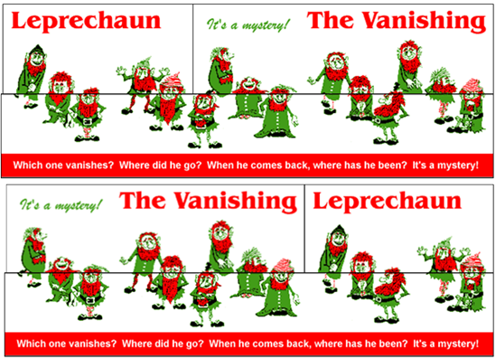 Aquest joc va ser creat per Pat Patterson Lyon l’any 1968. El joc té tres peces. La de sota no s’ha de moure. Però si intercanviem el lloc de les dues superiors veurem una cosa ben estranya: a una de les disposicions hi ha 15 nans i, a l’altra, 14.