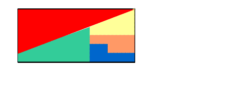 Es tracta de transformar un quadrat de 8×8 retallat tal com s’indica en un rectangle. Pots fer-ho arrossegant les peces. Per girar-les utilitza el punt vermell.
