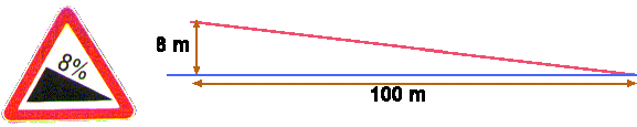 Un pendent del 8% indica que, per cada 100 m que avancéssim horitzontalment, pujaríem (o baixaríem) 8 m.