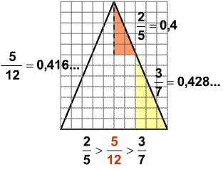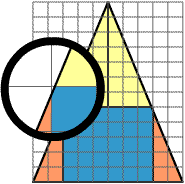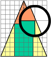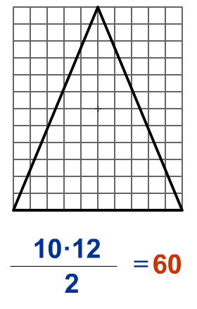 Al triangle que suma 59 d’àrea, el vèrtex del rectangle que comptem no arriba a tocar el costat del triangle gran. Per tant, el comptem amb mesures més petites. El real és una mica més alt i una mica més ample. Prou per fer el quadret d’àrea que li falta al nostre càlcul.