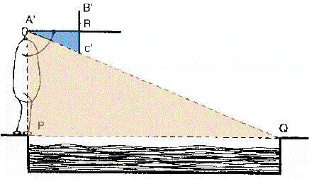 Els triangles A’RC’ o A’PQ són semblants. No serà difícil, doncs, establir una proporció que ens permeti calcular l’amplada del riu.