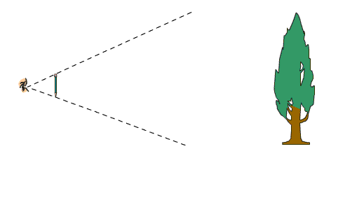 - Quan visualment la posició de la persona coincideixi visualment amb la punta del llapis la distància entre el peu de l’arbre i la persona serà equivalent a l’altura de l’arbre.