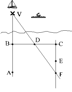 - Primer es posaven dues estaques A i B alineades amb el vaixell que és en un punt que anomenarem V.
