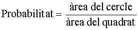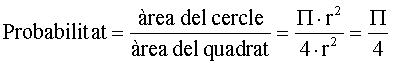 Si recordem que la fórmula de l’àrea del cercle és A = Pi · r2, només cal fer una mica d’àlgera per calcular aquesta probabilitat.