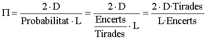 Així si triem una distància doble de la longitud de l’agulla només cal multiplicar per 2 el quocient entre tirades i encerts i si la distància és doble només caldrà multiplicar per 4 aquest quocient.