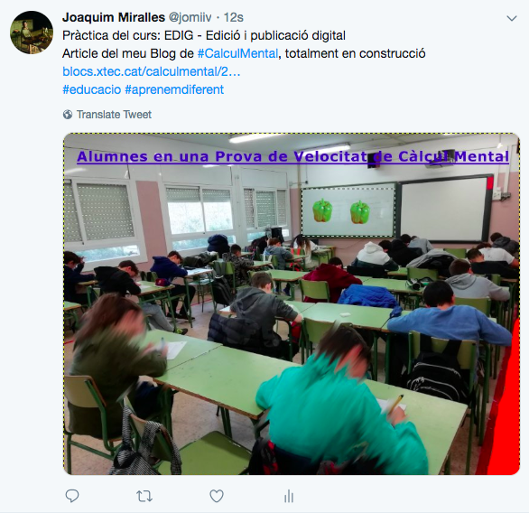 Publicació de l’article a Twitter