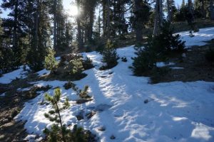 A continuació, hem començat el descens cap al Coll de Belitres i hi hem pogut contemplar un ramat d’isards molt nombrós saltant i corrent precisament prop de la zona a la que ens dirigíem. Per descomptat, quan hem arribat al coll feia estona que havien desaparegut. Ens hem aturat per calçar-nos, ara sí, els grampons perquè al Torrent Fosc, fent justícia al seu nom, no hi entrava ni un bri de sol i s’hi acumulava un gruix notable de neu dura. Els grampons ens han permès superar amb molta comoditat un descens força vertical, fins arribar a la petita resclosa que tanca el Torrent i protegeix la pista. Aleshores hem continuat per la pista que, en un passeig llarg i planer, ens ha conduït de nou cap a Gòsol. Hem arribat als cotxes pels volts de quarts de dues.