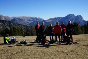 Avui érem vuit. En Mingo, en Joan Francesc, en Vicenç, en Carlos, en Pere, en Quim, l’Andreu i jo. Amb samarreta, camisa i jersei, o amb indumentària més tècnica, la colla d’”antics” hem gaudit dels espectacles de la natura: els massís del Pedraforca i la Serra d’Ensija, que canviaven de forma a mesura que guanyàvem alçada i ens movíem per la Serra del Verd, però també la panoràmica de tot el Cadí, i l’espectacle impressionant damunt de Sant Llorenç de Morunys i l’embassament de Llosa del Cavall… Un regal per als sentits que, tal com passa amb els millors regals, no es podia embolicar ni posar-hi un llacet.