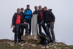 Els cotxes d’en Vicenç i l’Àngel (amb en Joan, en Carlos, en Pere i jo) han arribat còmodament fins a les basses de Monars pels volts de les vuit, i a un quart de nou ja ens enfilàvem per la pendent del Comanegra. Ben aviat ens hem endinsat en la boira que poc abans havíem contemplat des de baix. Així, el dia que semblava tan clar, lluminós i transparent, ha canviat del tot i ens ha ofert una passejada màgica, quasi fantasmagòrica. A les nou ja érem al cim. No cal dir que les fantàstiques panoràmiques les havíem d’imaginar, perquè el que ens envoltava era la blancor de la boira més espessa.