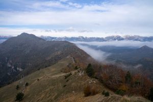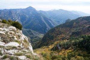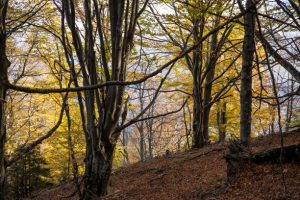 Hem seguit endavant cap al següent objectiu, el puig de Sant Marc. Cap a les onze ens hem endinsat en la fageda que en cobreix la base, on hem rebut el regal de les primeres ullades de sol de tot dia. A partir d’aquest moment, el paisatge s’ha vestit de colors tardorencs brillants: grocs, marrons, ocres, vermells, verds… han aparegut sota el blau sorprenent del cel.