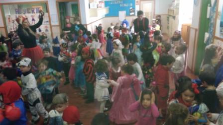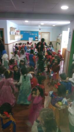 El divendres 9 de febrer els nens i les nenes d’infantil van fer una desfilada per ensenyar les seves disfresses. Un a un van anar passant per la “passarel·la” al ritme de la música. Després vam ballar tots junts.