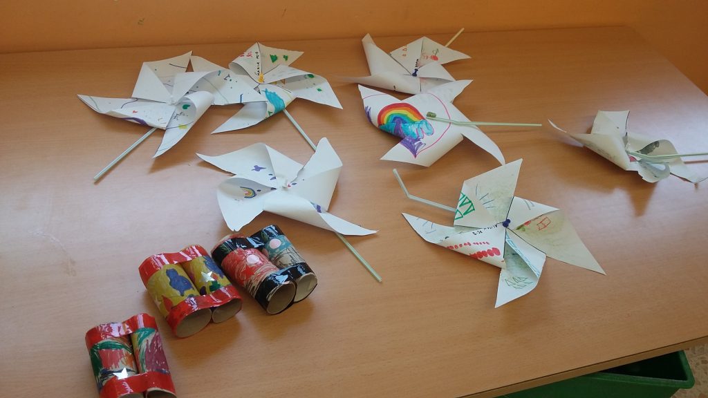 A P3, P4 i P5 hem fet: un molinet de vent, un telèfon i uns prismàtics.