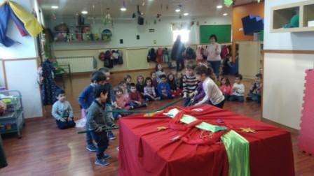 El dia 21 de desembre els Elefants i els Dofins van donar cops de bastó al nostre Tió per veure si ens deixava alguna cosa, va ser un moment molt emocionant. Després de molts intents finalment el Tió va ser molt generós i ens va deixar torrons, neules i xocolatines que després ens van menjar tots junts.