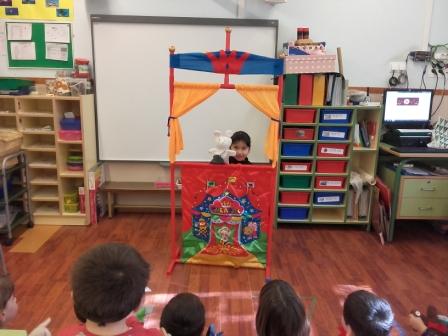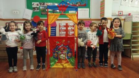 Aprofitant que tenim estones de mig grup hem volgut representar el conte la Rateta que escombrava l’escaleta i ho han fet amb un teatrí i titelles. Un cop superades les primeres vergonyes s’ho van passar superbé.