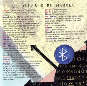 LLETRES DE LES CANÇONS 2. El món digital 3. El blues d’en Marcel 4. La creació de la Sara 5.TOT EL QUE JO PUC FER PER TU 6. Corre, salta 7.LA MUSICA 7A. Ara fa dies que no plou 8.LA PLUJA .8A. El paràmetre de la humanitat 9 QUE FAIG 10. Adéu 11. Final 02 – El mon digital 03 – El blues d’en marcel