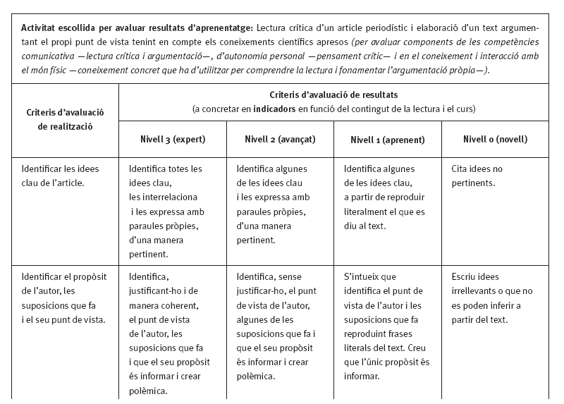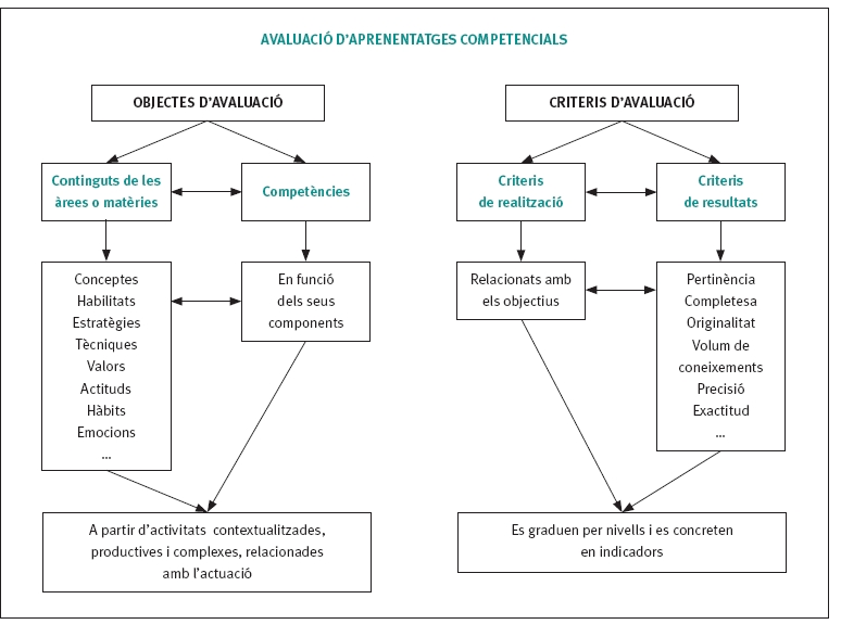 L’avaluació per competències comporta reconèixer si s’és capaç d’utilitzar els coneixements en l’actuació. Per tant, l’assoliment de les matèries comporta l’assoliment de les competències i viceversa.