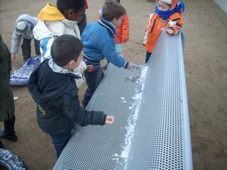 Avui hem sortit ha tocar la neu que hi havia al pati. N’hi havia ben poca però com que al nostre poble no acostuma a nevar, a nosaltres ens ha fet molta il.lusió. A classe estem treballant els sentits i aprofitarem que ha nevat per saber com és la neu, quin gust té…