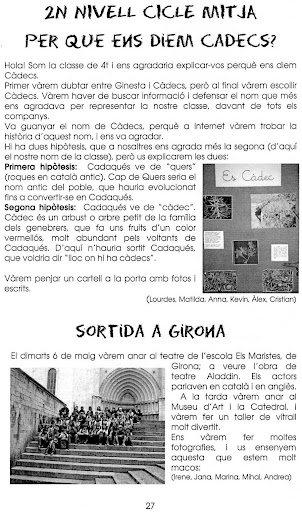 El cicle mitjà ha treballat el Coneguem Catalunya a partir del quadre de’n Salvador Dalí, ” la muchacha de espaldas” . En aquest quadre es veia l’Anna Maria Dalí d’esquenes mirant el poble de Cadaqués. La tasca dels alumes va ser dibuixar el poble de Cadaqués des d’un lloc en concret, tant podia ser la platja, com al poble,.. tot imaginant-se que l’Anna Mª Dalí l’observava.