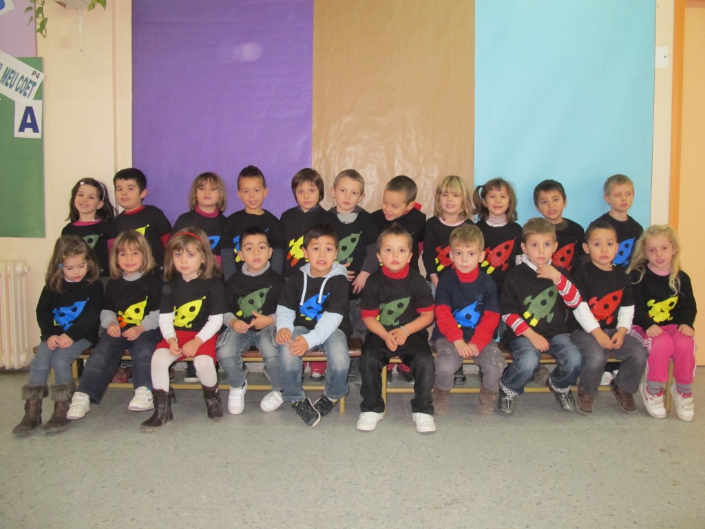 I per començar aquí teniu unes fotos de cada grup amb les samarretes que van fer servir per la Cantada de Nadal.