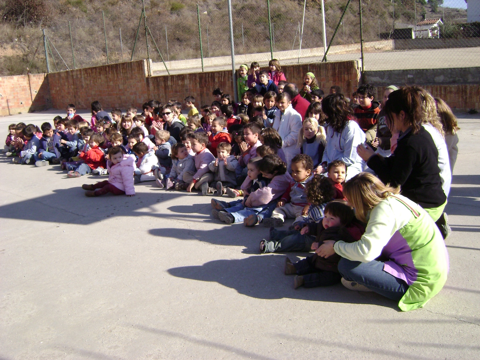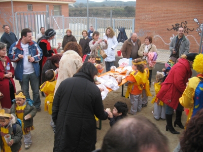Al principi teníem por però mica en mica li hem perdut i ja veieu… alguns fins i tot li tocaven la cara. Veieu quants nenes i nenes tenim a La Fassina? Aquí hi ha més de cent però hem fet trampes ja que hi ha els de la Llar d’infants Nins… jejeje a que us pensàveu que hi havia alguns disfressats de petitets?
