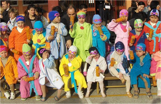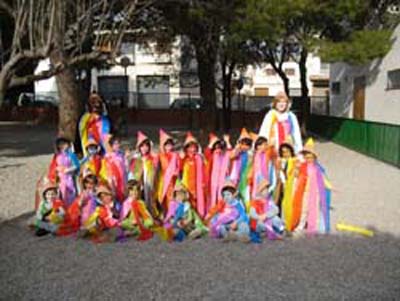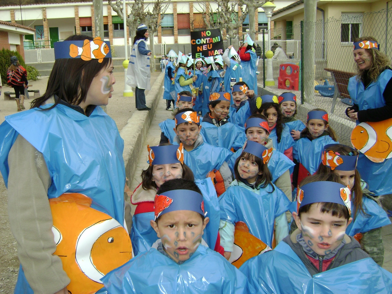 Els més petits anaven de peixos: peix pallasso, peix globus etc, els de CI ja es van fer un vaixell i anaven de mariners, CM tenen més motivacions ecologistes i van disfressar-se contra la contaminació dels mars i així els de CS podien navegar amb el seu vaixell pirata mentre les sirenes els seduïen entre les aigües blaves.
