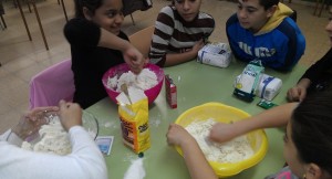 2n. Afegim l’oli i l’aigua i ho amassem bé dins el bol.