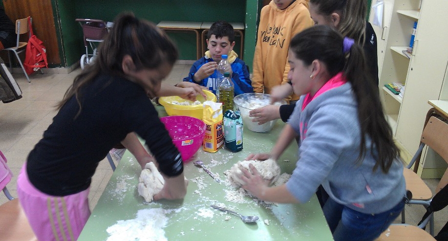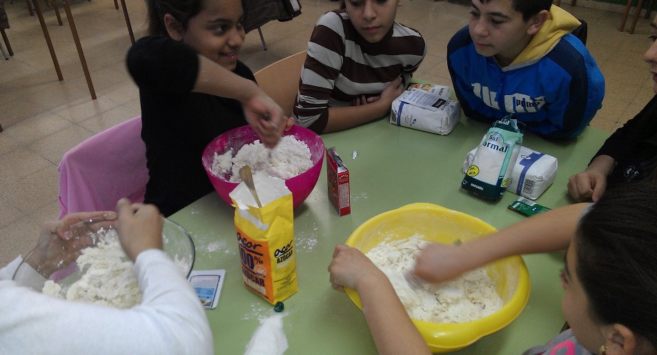 3r. Un cop no s’enganxi en el bol, es treu la massa del bol i s’amassa sobre la taula amb farina perquè no s’enganxi.