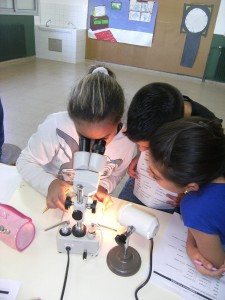 Primer hem après quines parts té i per a què funciona cadascuna. Després hem buscat insectes, llavors, fulles, … i les hem observat amb el microscopi.