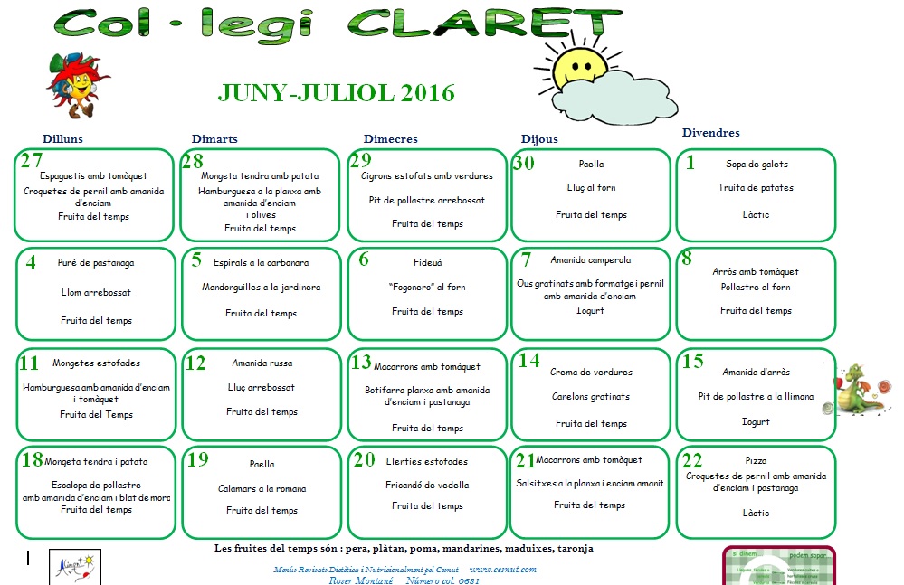 Aquí teniu el menú d’aquest mes: (feu clic a sobre per veure’l més gran)