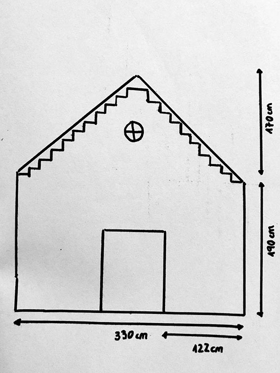 En la part anterior i posterior hi ha unes lluernes superiors circulars cobertes amb un element de terrissa per deixar passar la llum natural i airejar la caseta quan aquesta està tancada. En la paret lateral dreta hi ha una petita finestra amb un bastiment de fusta molt deteriorat.