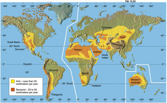 Els deserts són zones on abunda el modelat eòlic. Aquests són els principals deserts de la Terra: